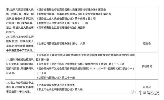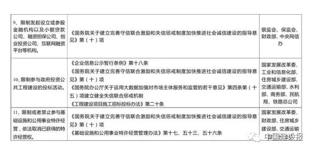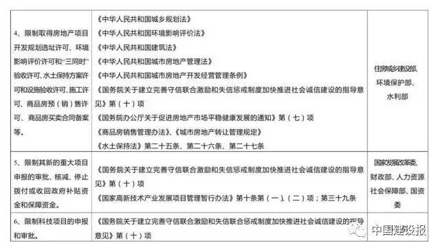 (一)依法限制或者禁止惩戒对象的市场准入、行政许可或者融资行为