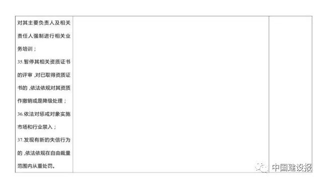 35.暂停其相关资质证书的评审,对已取得资质证书的,依法依规对其资质作撤销或降级处理;