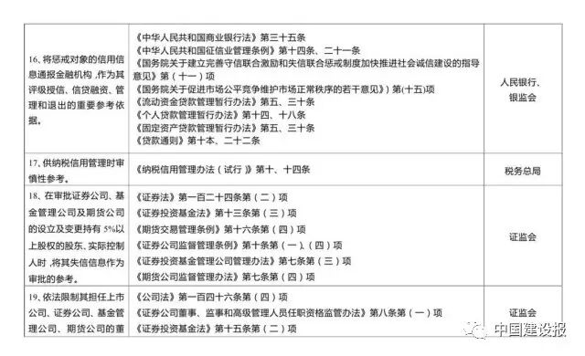 16.将惩戒对象的信用信息通报金融机构,作为其评级授信、信贷融资、管理和退出的重要参考依据。