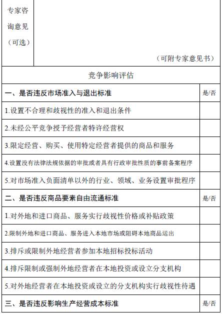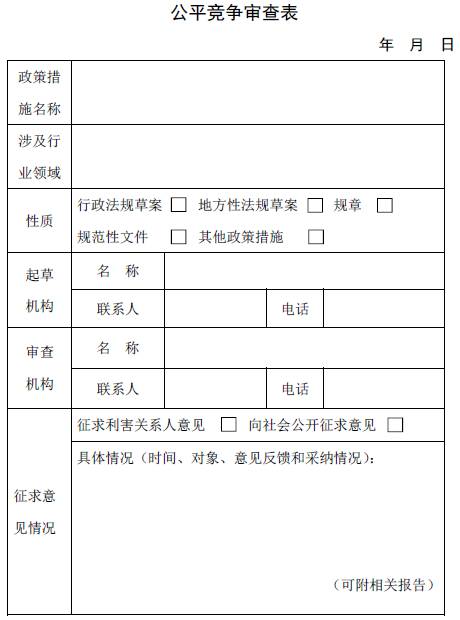 二、公平竞争审查表